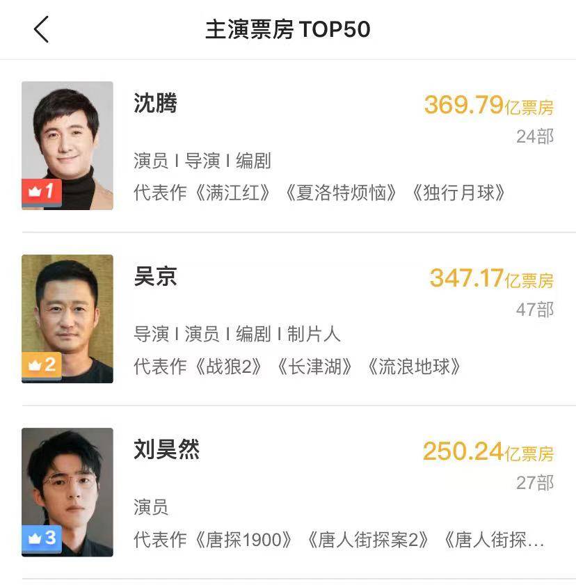 也就是说刘昊然勇追电影圈两大男神,吴京和沈腾,刘昊然还很年轻,追上前两两个演员应该是早晚的事,因为他们年纪一大把,只有刘昊然最年轻,他不仅超了黄渤,还超了王宝强。