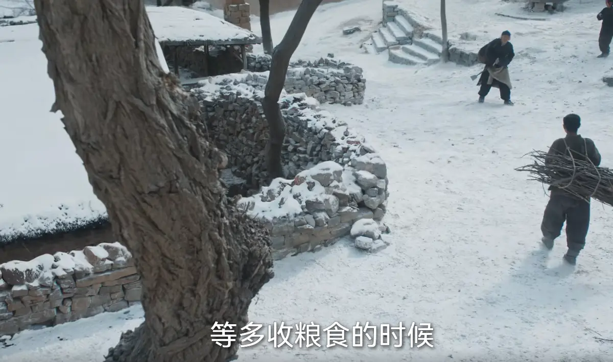 故事发生在1926年农村,冬天白雪茫茫一片,全都是真实场景拍摄,看着雪地里那深深陷进去的脚印,就知道不是人工降雪。